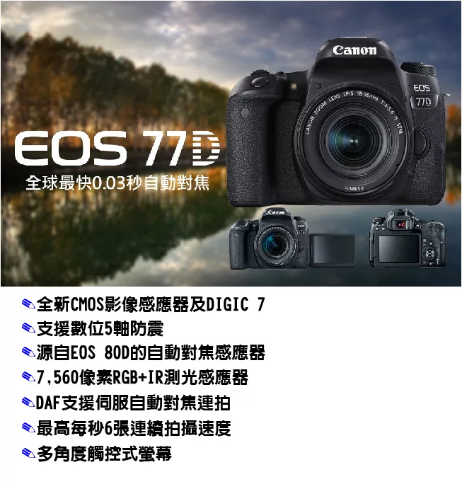 Canon EOS 77D 單機身-(中文平輸)-送32G記憶卡+專用鋰電池+專用座充+專業單眼攝影包+強力大吹球清潔組+高透光保護貼 評價