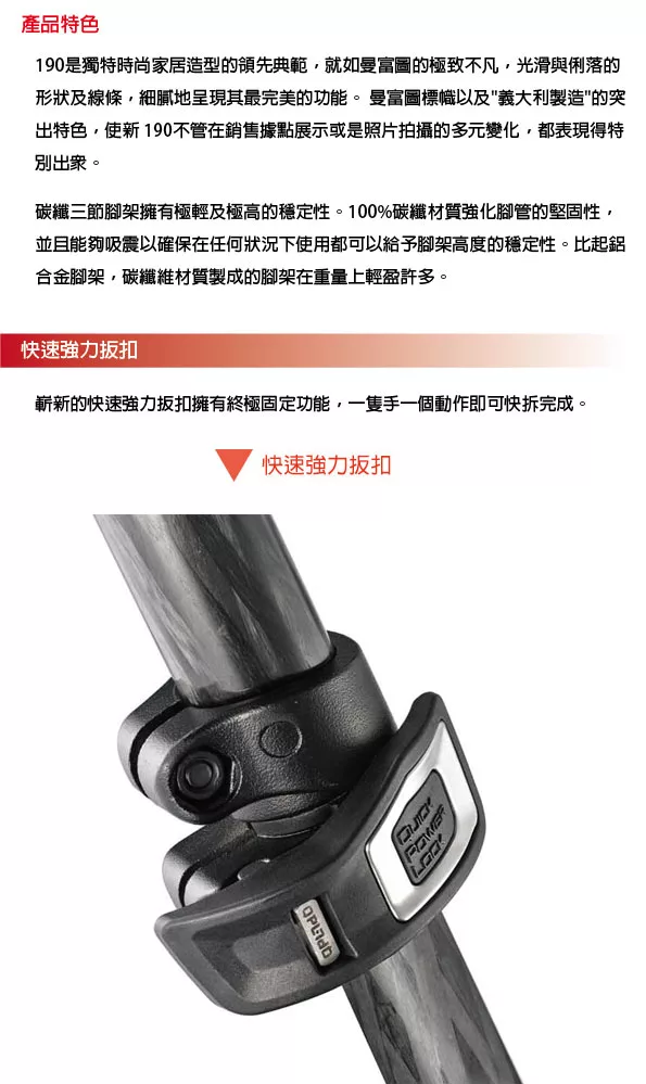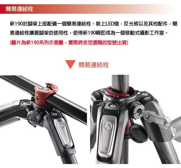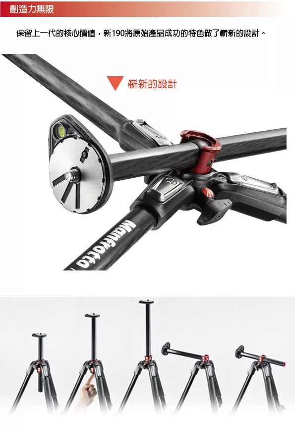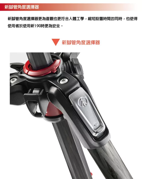 Manfrotto MK190CXPRO3-3W(MT190CXPRO3+MHXPRO-3W)新190系列碳纖維三節腳架三向雲台套組![]()